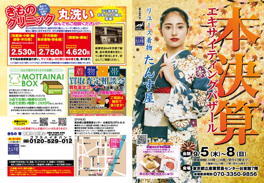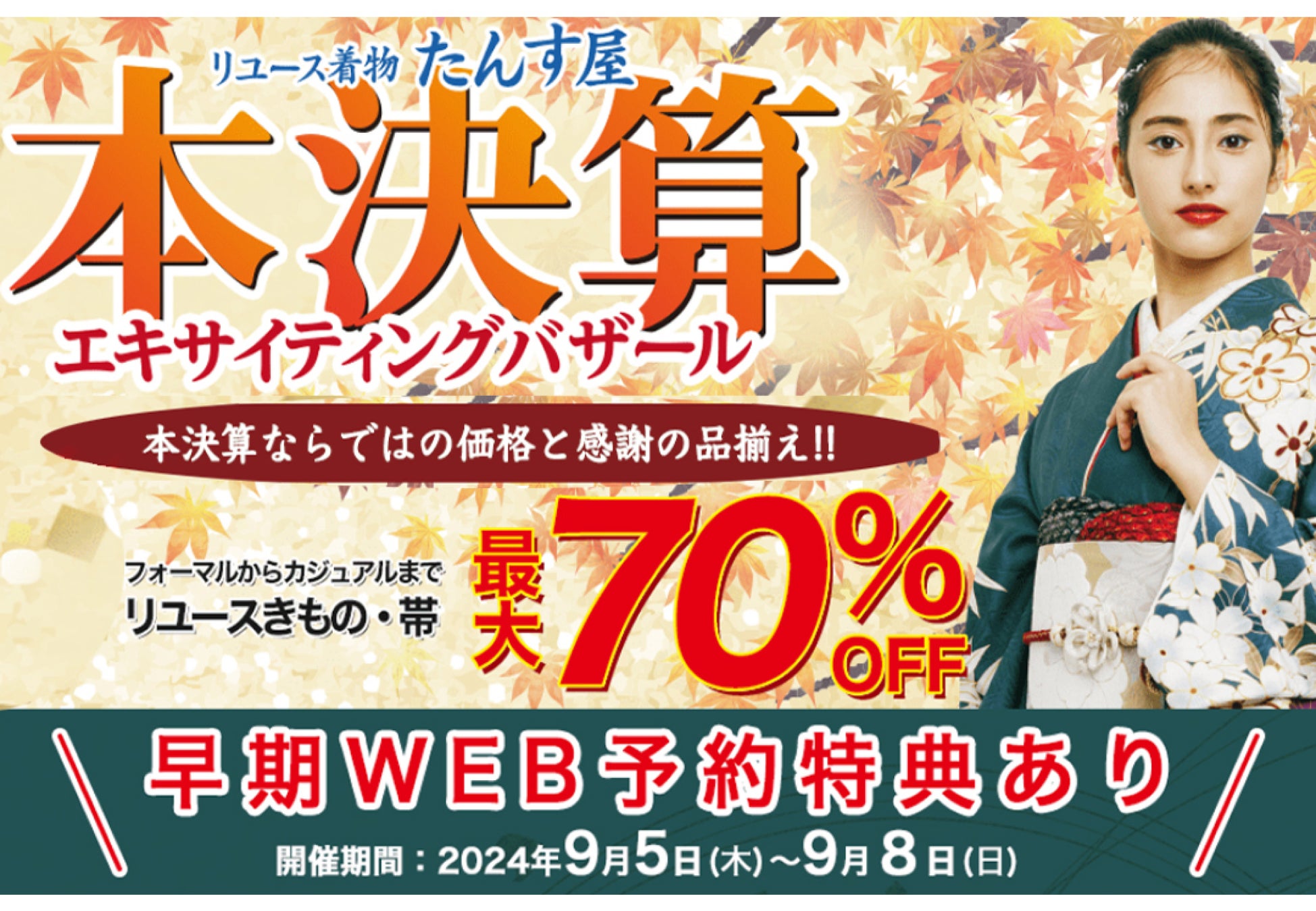 リユース着物「たんす屋」の展示・販売イベント「本決算エキサイティングバザール」が2024年9月5日(木)から9月8日(日)まで開催! WEB予約受付中!