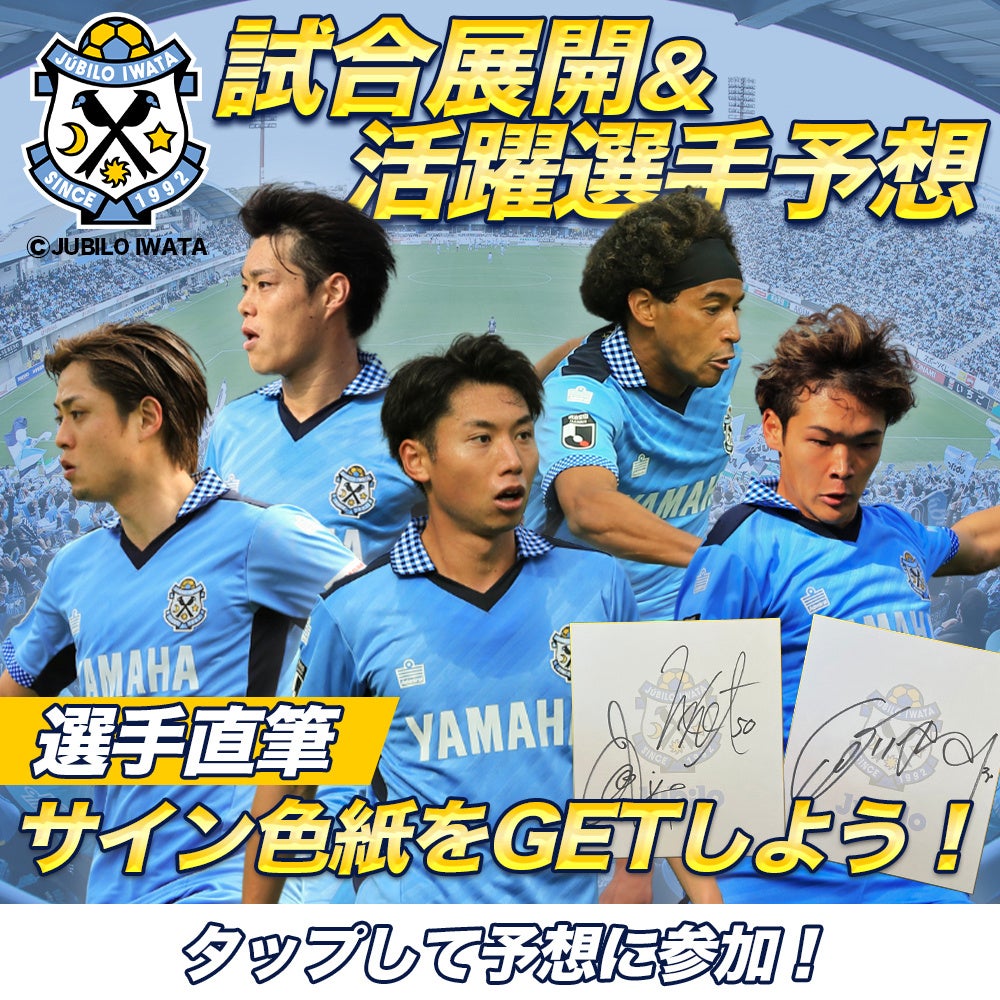 前節で見事な逆転勝ちをおさめ、降格圏を脱出したジュビロ磐田。現在リーグ首位のFC町田ゼルビアとアウェイで対戦。さらに順位を上げていくためには引き続き負けられない大事な一戦を、予想と共に応援しましょう!この試合の展開や活躍選手を予想した人の中から成績上位3名の方に選手サイン色紙をプレゼントします。