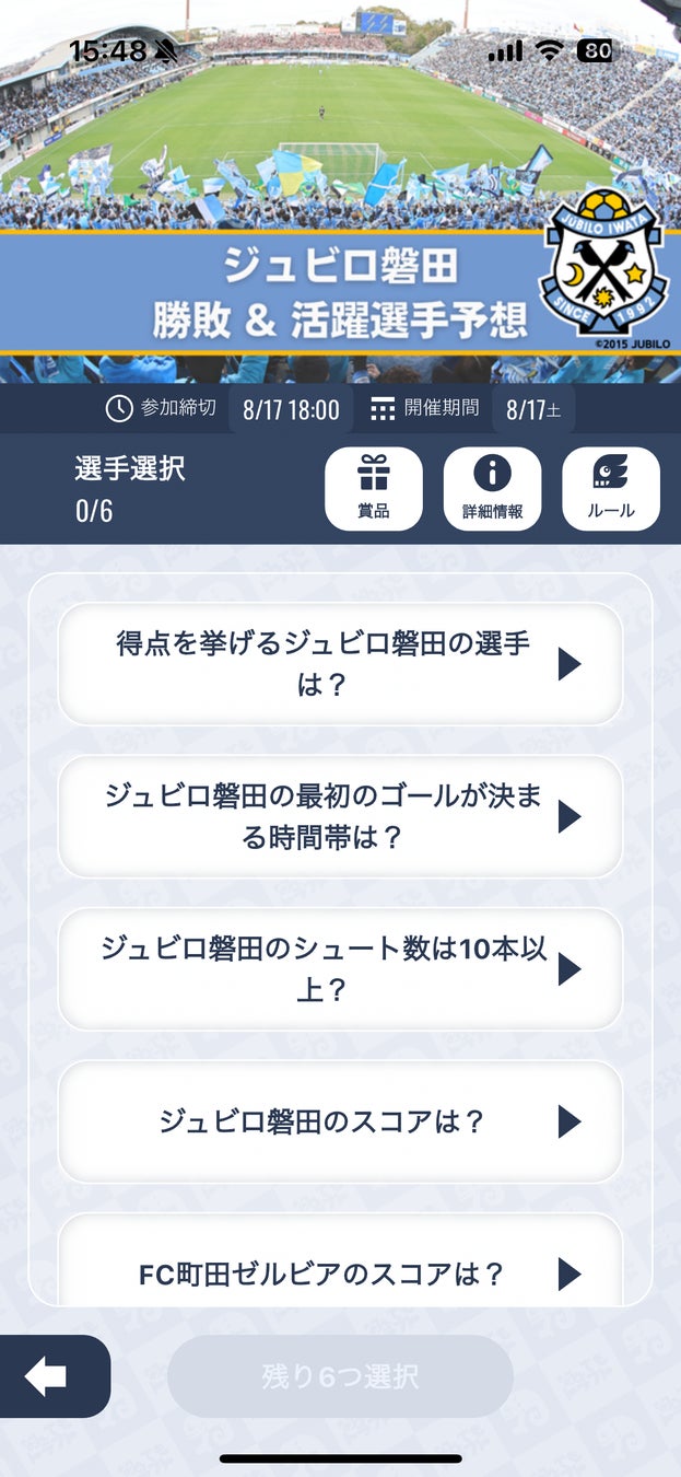 8月17日(土)FC町田ゼルビア戦のジュビロ磐田試合展開・活躍選手予想をスポーツ予想アプリ「なんドラ」で開催!