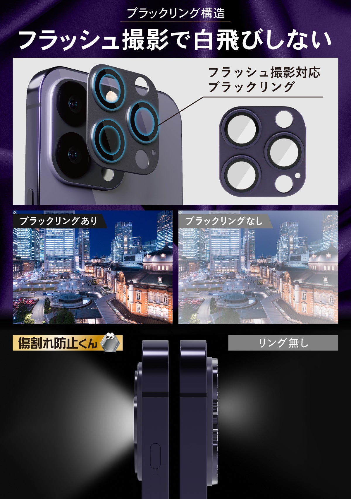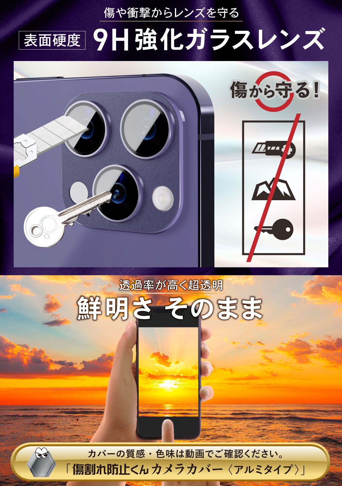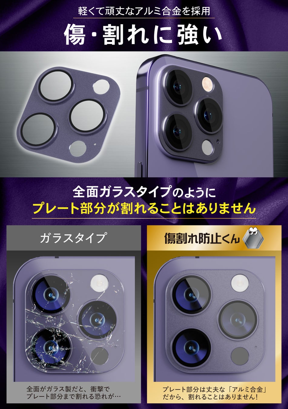 製品概要 iphone15 Pro / ProMax用 【傷割れ防止くん】 レンズカバー アルミ タイプ