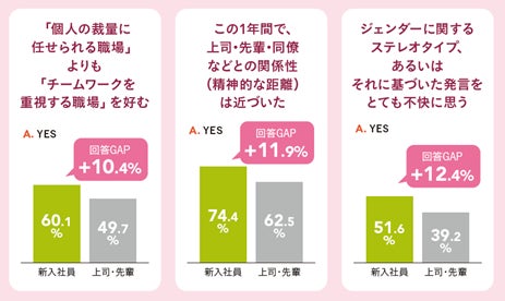 ― ジェンダーへのステレオタイプな発言を忌避し(対上司・先輩比:+12.4%)、人との調和を大切にする