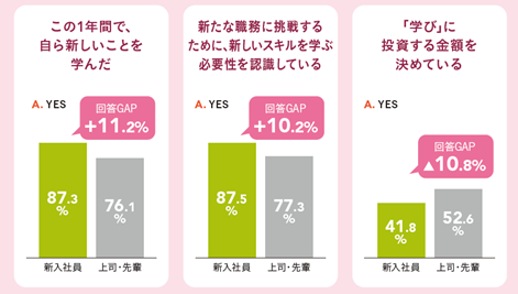 ― 学びの意欲はある(対上司・先輩比:+10.2%)一方、具体的な行動や投資には慎重な傾向