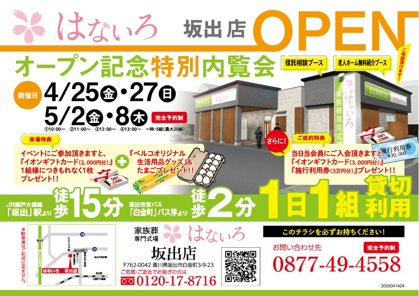 【ベルコ】家族葬専用の新式場「はないろ坂出店」オープン