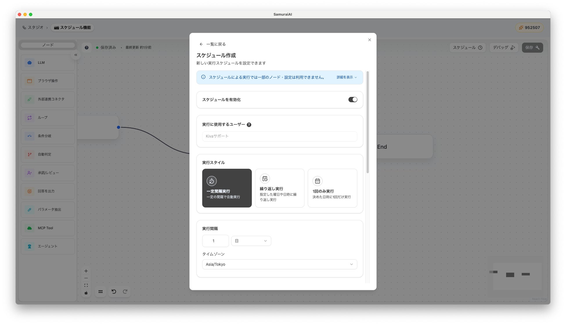 株式会社Kiva(本社:東京都中央区、代表取締役:磯崎裕太)が提供する業務自働化AIエージェント「SamuraiAI」において、ワークフローを指定日時・指定間隔で自動実行できる「スケジュール機能」を正式リリースいたしました。