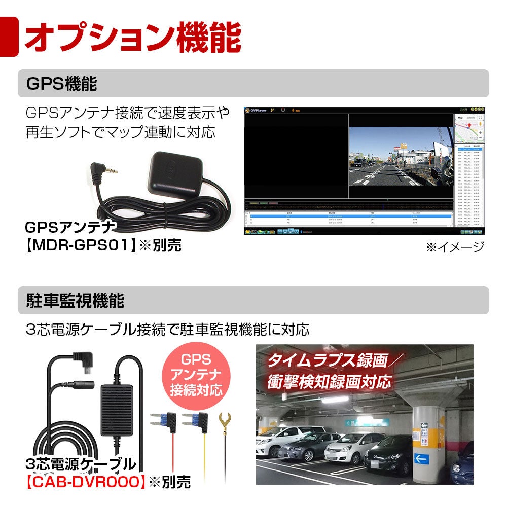 ・駐車監視機能付(別売りの3芯電源ケーブル要)