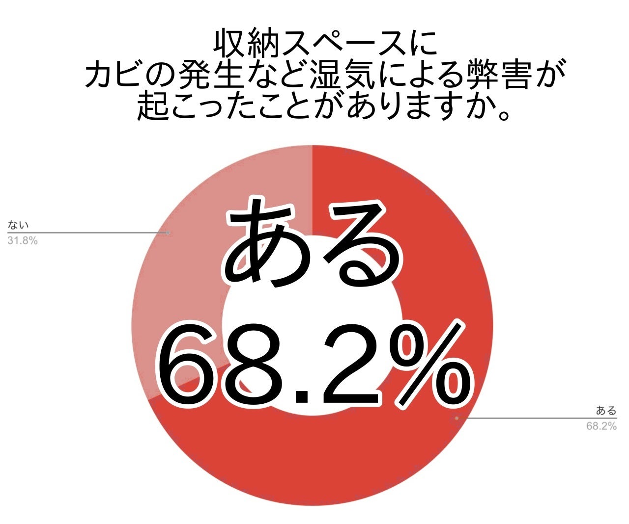 また、収納スペースにカビの発生など湿気による弊害が起こったことがある方は約7割でした。
