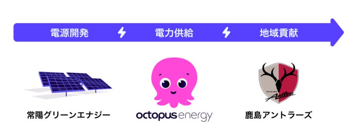 オクトパスエナジーは欧州を中心にグリーン電力の普及とテクノロジー革新で実績を持ち、2025年2月には鹿島アントラーズとクラブパートナー契約を締結しました。契約締結を機に連携して持続可能なエネルギー利用を進め、今回は鹿島アントラーズが掲げる「地域に責任を持つクラブ」という理念を環境面から体現する取り組みが実現しました。一方、常陽銀行は、地域に根ざした金融ネットワークを提供するとともに、茨城県を中心とした太陽光発電所の開発と再生可能エネルギー資源の供給に取り組んでおり、本取り組みの土台を支えていきます。
