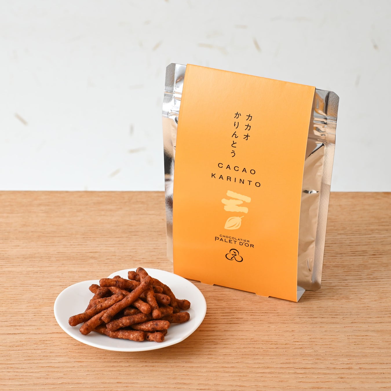 細みで軽やかな食感のかりんとうにカカオニブを生地に練りこみ、しっかりとカカオの味を引き立てました。外にかける蜜にはカカオパウダーを加えることで甘すぎない大人のかりんとうに仕上げました。