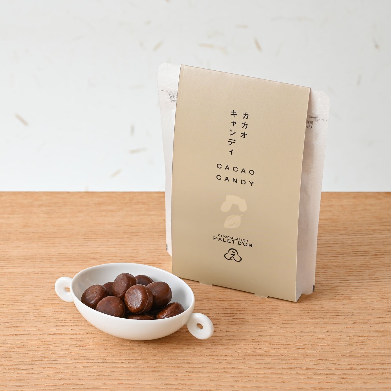 『にほんばしえいたろう』の代表商品である飴と『ショコラティエ パレドオール』のチョコレートの素となる自家製カカオパウダーを合せた正真正銘のコラボレーションが実現しました。カカオを飴に煮詰めることで、優しい甘みがありつつ、本格的なカカオの香りを感じることができます。
