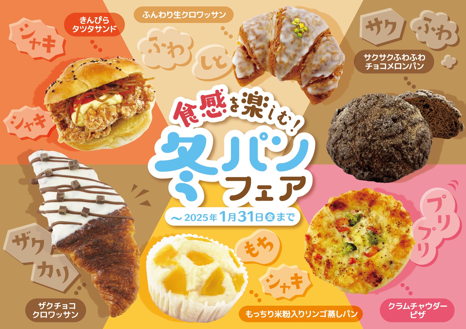 【阪急ベーカリー】食感の楽しさ×冬の美味しさをお届けします。1月は食感を楽しむ冬パンフェアを開催。