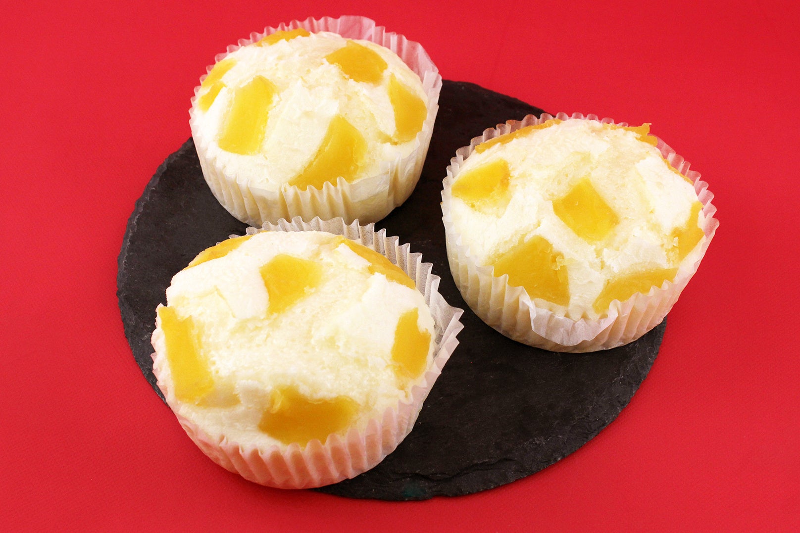 国産米粉を使用したもっちりとした蒸しパンにリンゴプレザーブをトッピングしました。リンゴの甘酸っぱくシャキッとした歯ごたえと、ふかふかと甘いもちもちな生地の相性は絶妙で、食べ進める手が止まりません!