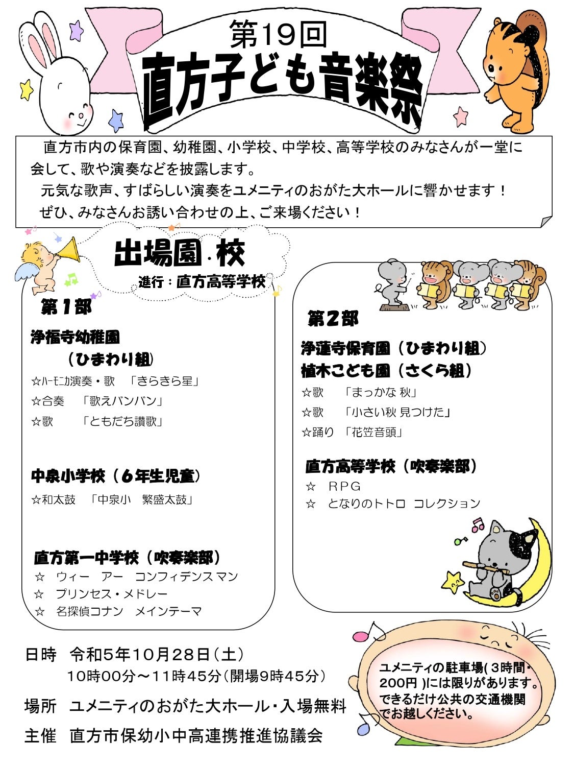 昨年までコロナ禍により中止となっていました子ども音楽祭が、4年ぶりに開催となりました。