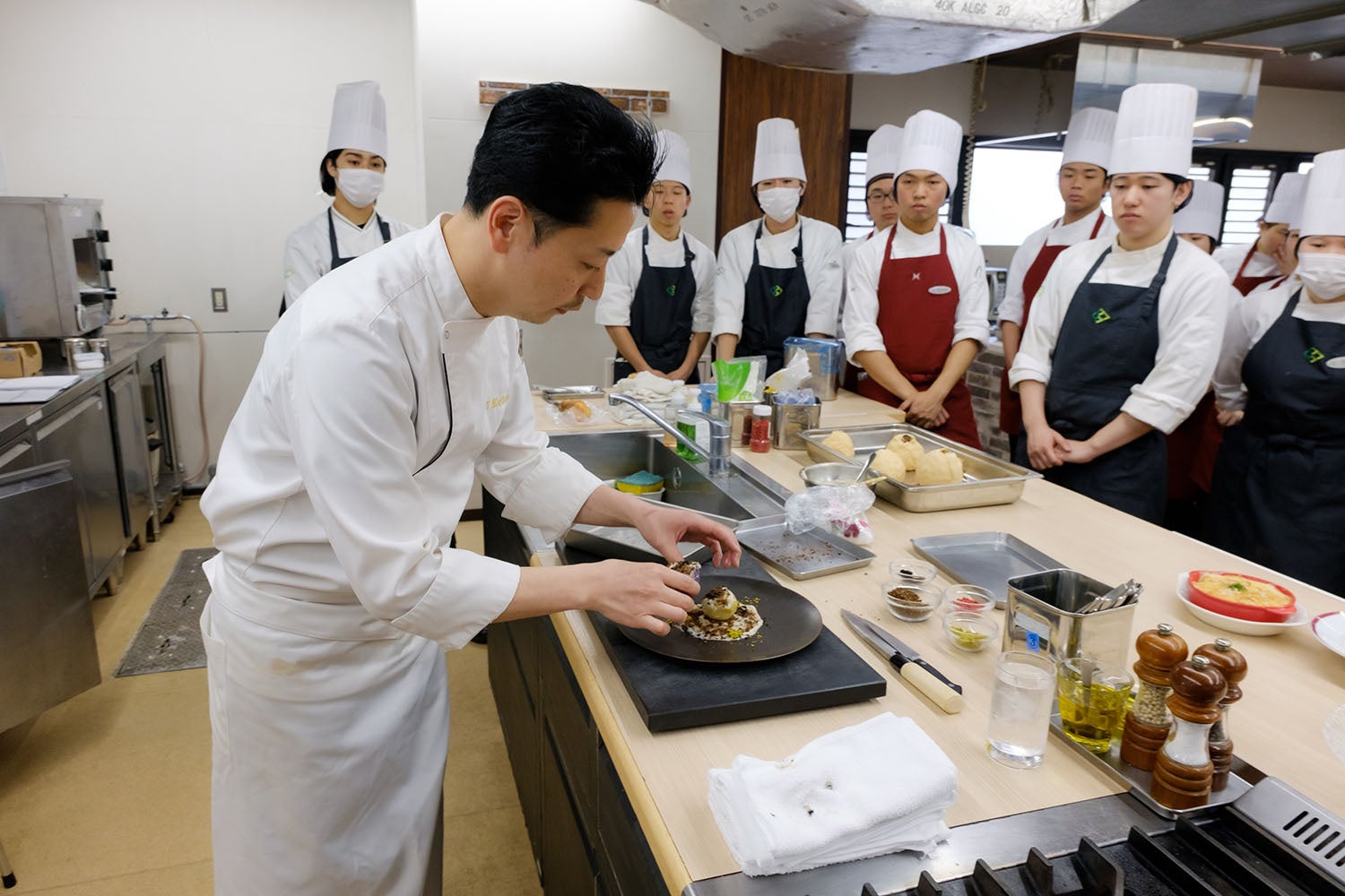 「同じ畑に行って同じものを見ましたが、バリエーションがある料理が出来ましたね。どの料理も間違いでは無く、逆を言えば全員が納得する料理もありません。だからこそ料理は面白く、自分を信じて、自分が美味しいと思う一皿を作ることが大切です。ですが、皆さんにはまだそれを裏付けるための(料理や食材に関する)経験や知識が足りません。だからもっと色々なもの食べてほしいですし、畑にも行ってもらいたい。そして次回畑に行った際には、ぜひ生産者の方に美味しかったことを伝えてください。私は料理の業界に入って今年で21年目になりますが、今回のような授業は全国的にも珍しいと思います。次回は更に楽しんで料理していただけることを期待しています」と生徒たちに伝えました。