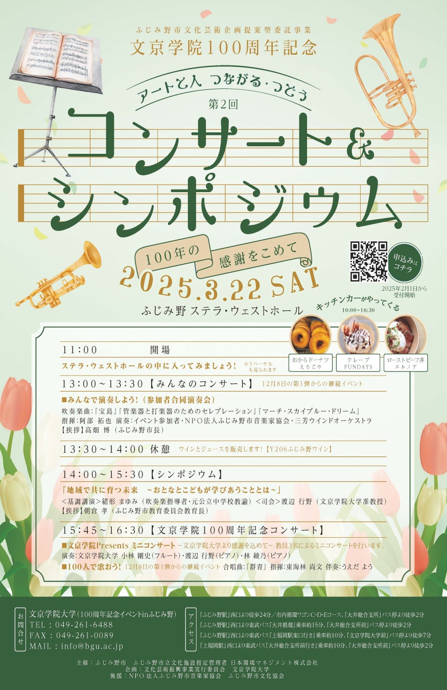 ふじみ野市文化芸術企画提案型委託事業を活用し、市内にキャンパスを構える文京学院大学が、学院創立100周年を記念して「世代を超えた音楽交流イベント」を開催します。