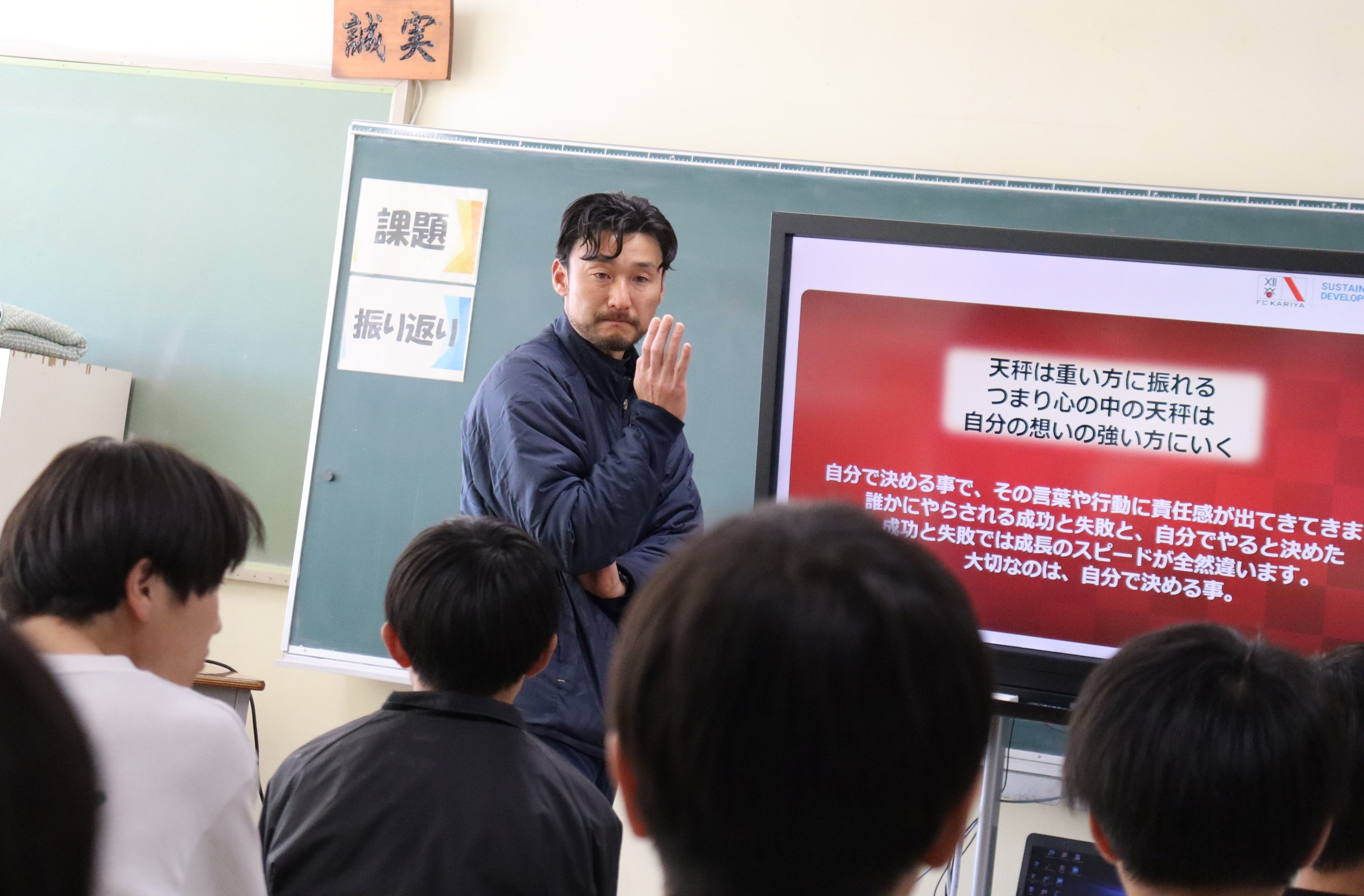 大府北中学校サッカー部の子どもたちに『自身と向き合うことの大切さ』を伝えた。