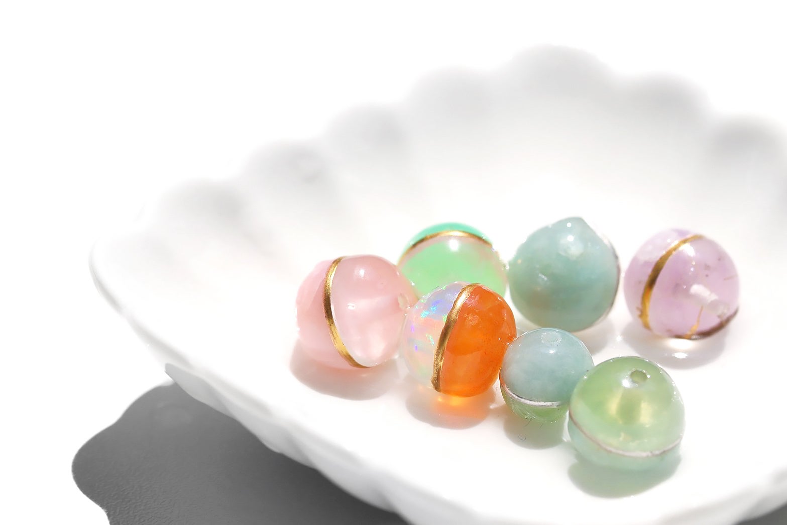 40種類の天然石から2つを選び、金継ぎのようにひとつに接合することで誕生します。