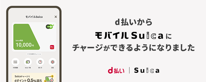 「d払い」アプリで簡単便利にSuicaへのチャージと Suicaの利用履歴が確認できます。