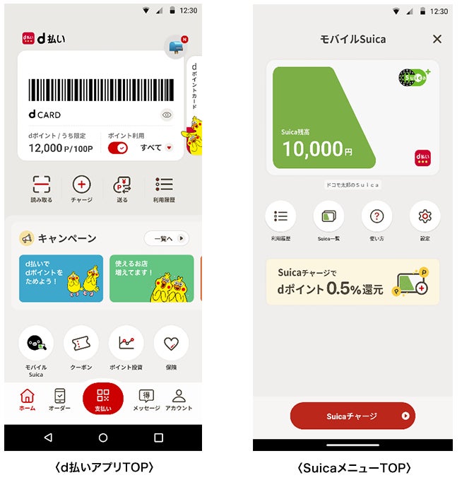 株式会社NTTドコモ(以下、ドコモ)と東日本旅客鉄道株式会社(以下、JR東日本)は、2024年2 月13日(火)からドコモが提供する「d払い®」アプリ(Android™版)とJR東日本が運営する「モバイルSuica」の 連携を開始いたします。これにより、「d払い」アプリ(Android版)からSuicaの新規発行のお申込みやチャージ(※1)が可能となります。