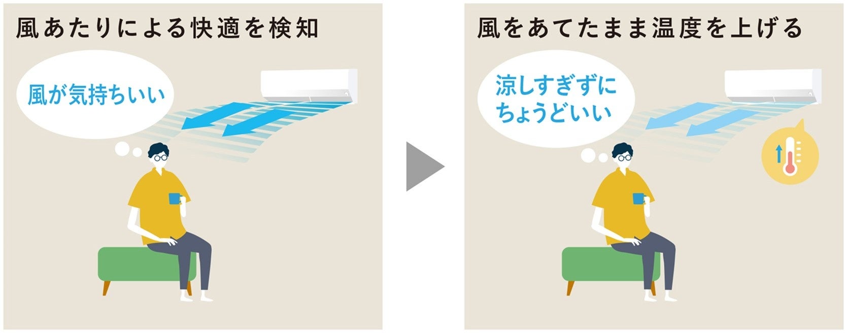 <「エモコテック」による風あたりの好みを考慮した省エネ運転イメージ(冷房の場合)>