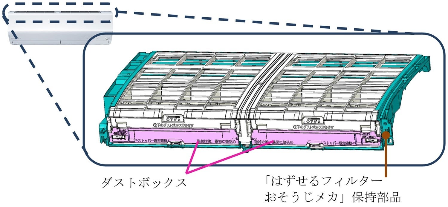・意匠面に配慮しつつ、従来の「ダストボックス」に加え「はずせるフィルターおそうじメカ」の保持部品での再生プラスチック材の利用を拡充したことで利用量を最大37.2%(※6)増加させ、サーキュラーエコノミーの実現に貢献