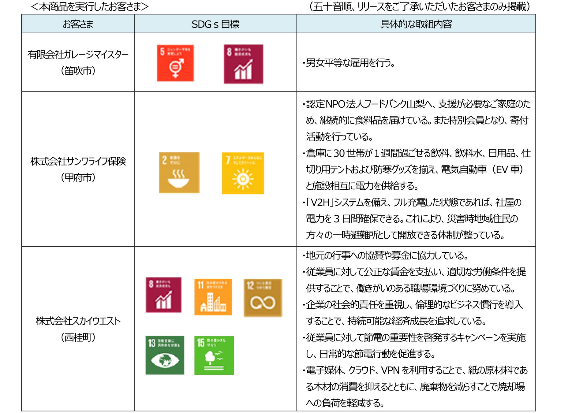 株式会社山梨中央銀行(頭取 古屋 賀章)は、SDGsの目標達成に資する取組みを積極的に行っているお客さまにご利用いただける「山梨中銀SDGs応援ローン」を、2024年8月中に22件実行しました。