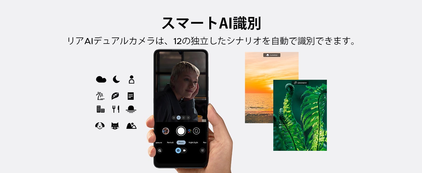 16MPのAIメインカメラと8MPのフロントカメラを搭載し、高度な撮影機能を提供します。これにより、プロ並みの写真やビデオを簡単に撮影できます。Google AIを活用し、【検索ビュー】や【テキスト抽出と翻訳】や【画像検索】や【宿題分析】や【植物と動物の識別】にも対応して、生活の良い仲間!