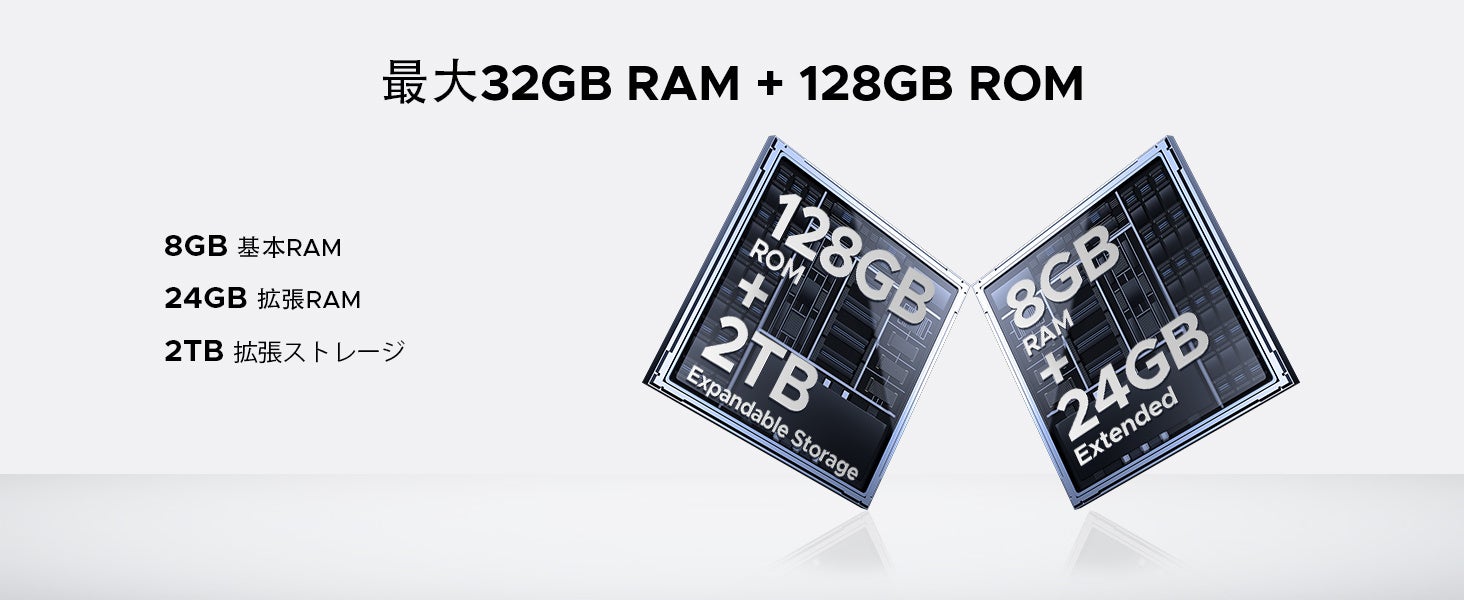 Note59は32GBのRAM(最大24GBの拡張RAM)と128GBのROMを搭載し、大量のアプリやデータを快適に保存できます。さらに、最大2TBのTFカードでストレージを拡張可能なので、写真、ビデオ、アプリをたっぷり保存できます。