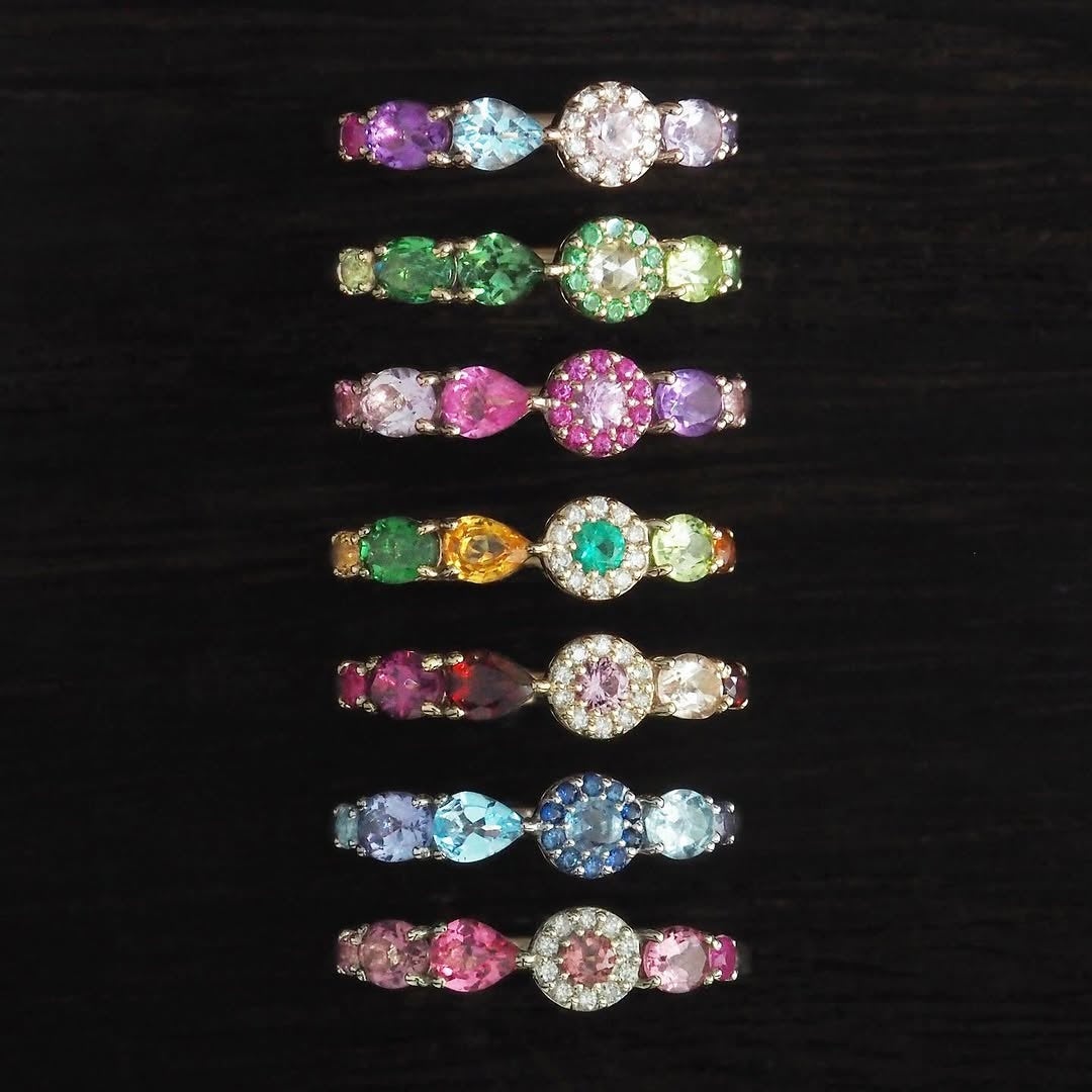 当ブランドは東京・恵比寿にて誕生し、おかげさまで今年で12年目を迎えました。色とりどりの宝石を用いた一点物のジュエリーを、熟練の職人たちがひとつひとつ丁寧に仕立てており、日々の装いにもそっと寄り添えるような、“心に届くジュエリー”をお届けしています。