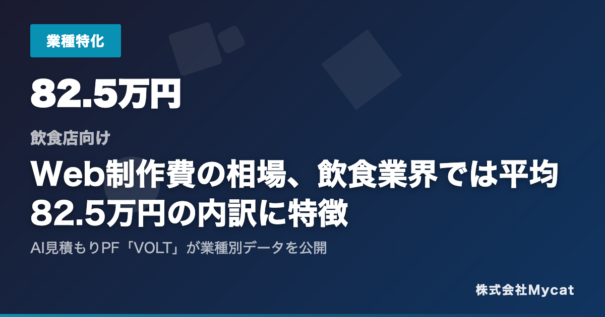 株式会社Mycat(本社:東京都目黒区)は、Web制作の見積もりをAIが自動生成するプラットフォーム「VOLT」(https://volt-web.dev)において、飲食業界に特化したWeb制作費用のデータ分析レポートを公開いたしました。