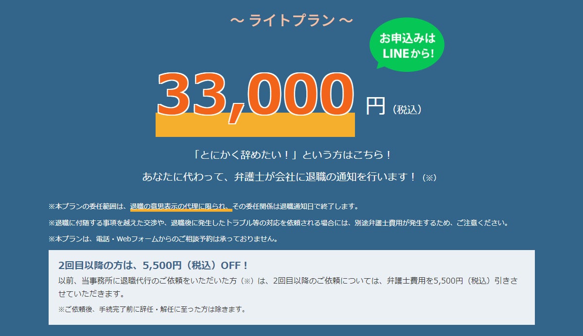 弁護士による安心の退職代行サービスを、よりお手軽に