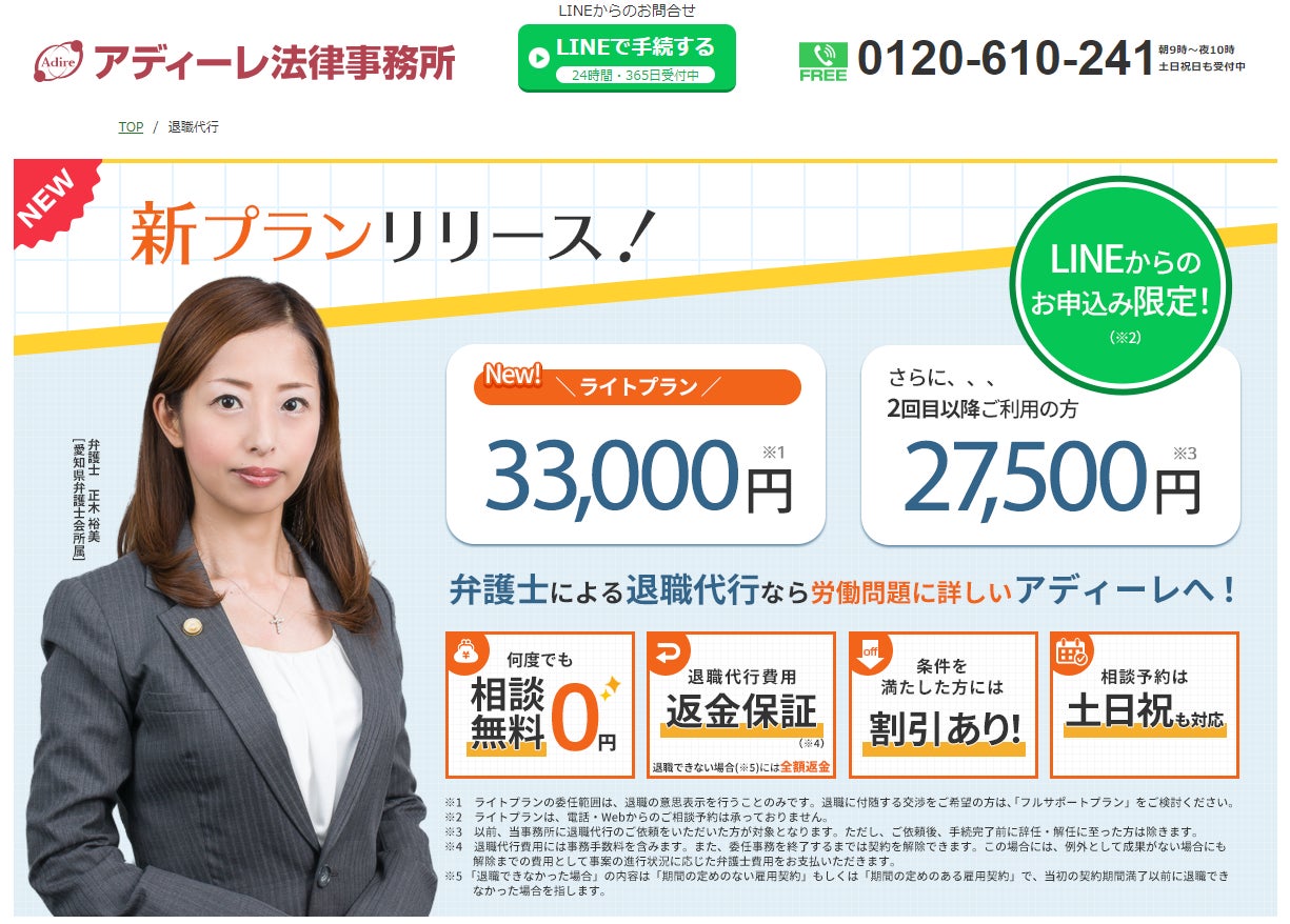 アディーレ法律事務所が退職代行サービスの新プランを開始
