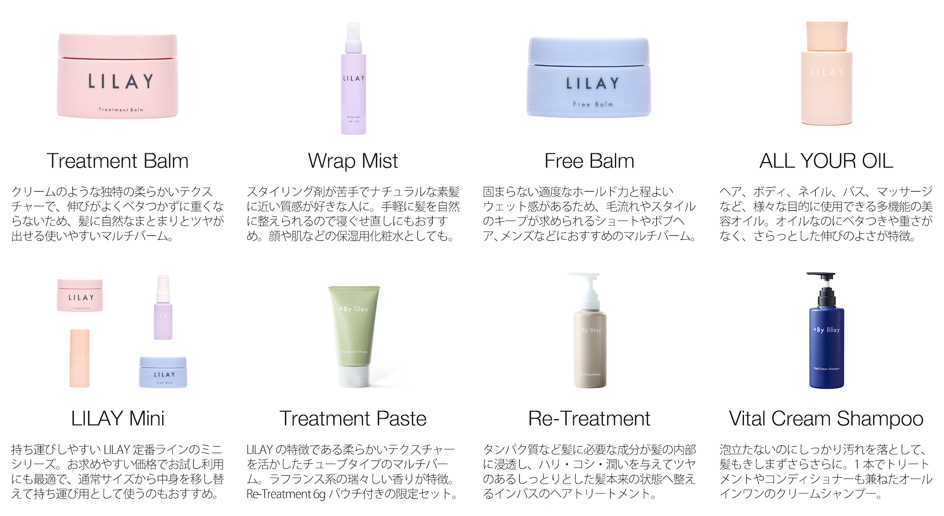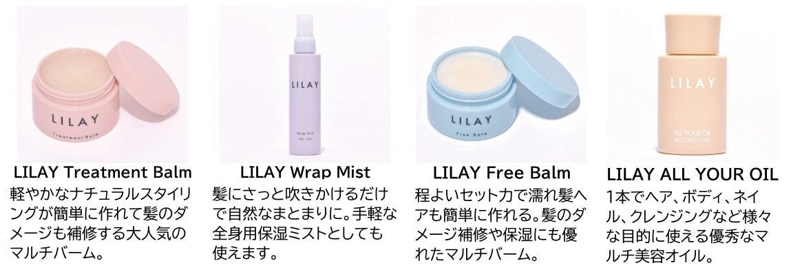 「LILAY」シリーズは、“働く日、遊びたい日、少しだけリラックスしたい日、一人一人のライフスタイルにフィットする、デイリーユースなアイテム。シンプルライフにもっと潤いを”をコンセプトに開発されたヘアケア・ボディケアプロダクト。