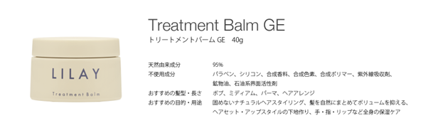 ヘアケア・ボディケアブランド「LILAY」シリーズより、ビューティストとのタイアップ商品「アロマティックバーム」と、全国の美容室・店頭で大人気のバームの新しい香り「トリートメントバームGE」が新発売