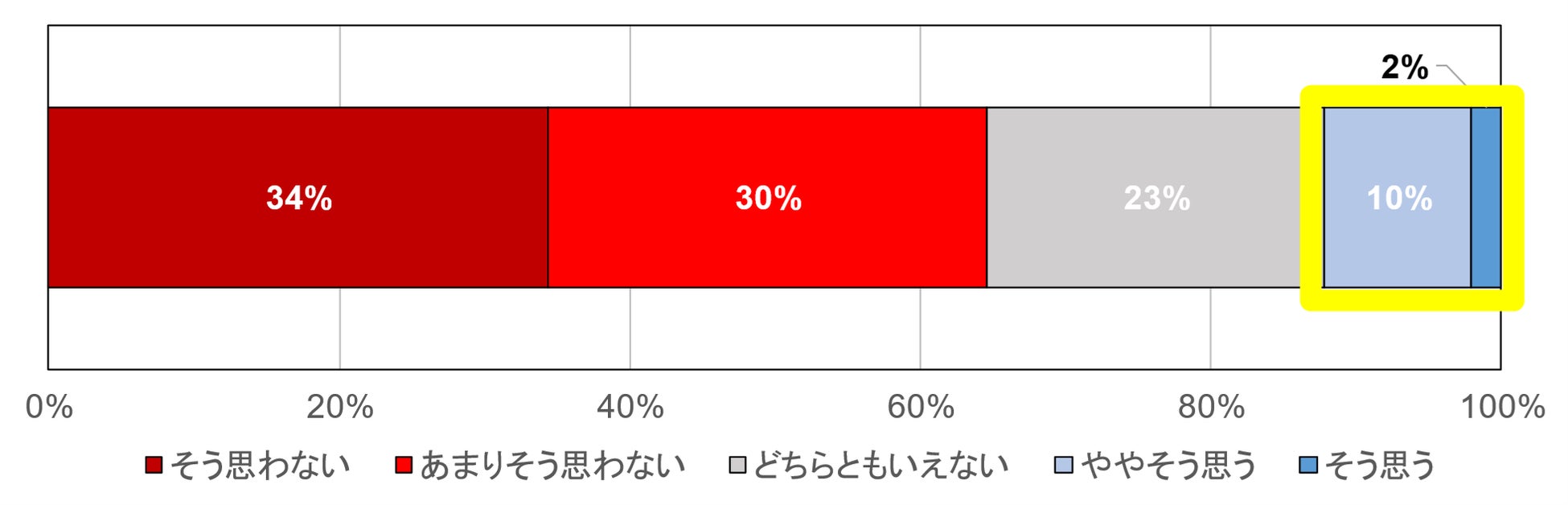 直近5年間に発売された治療薬によるアトピー性皮膚炎の新しい全身療法(「飲み薬」や「注射薬」など)についてよく知っていると思うか質問したところ、「ややそう思う」または「そう思う」割合は患者さんの12%でした(図4)。近年、様々な新しい治療薬の登場によりアトピー性皮膚炎の治療選択肢は広がっていますが、新しい治療薬について知らない患者さんが多いことがわかりました。