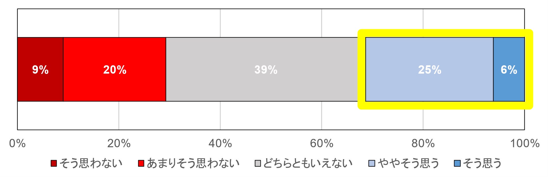 現在のアトピー性皮膚炎の治療をしていくことで、症状は良くなると思うかを質問したところ、「ややそう思う」または「そう思う」割合は、患者さんの31%でした(図2)。現在の治療に対して、患者さんの期待度が低いことがわかりました。