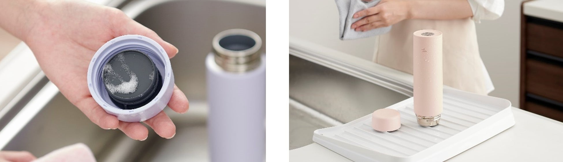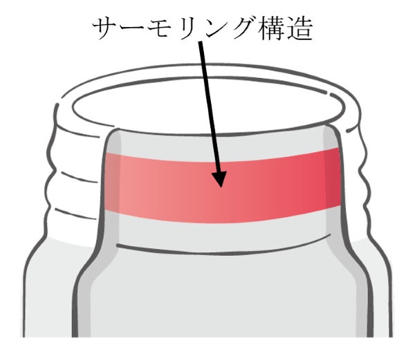 飲み口付近の内びんの厚みを部分的に薄肉加工する「サーモリング構造」を搭載し、6時間後の保温力※2が従来品に比べ約6℃向上※3しました。
