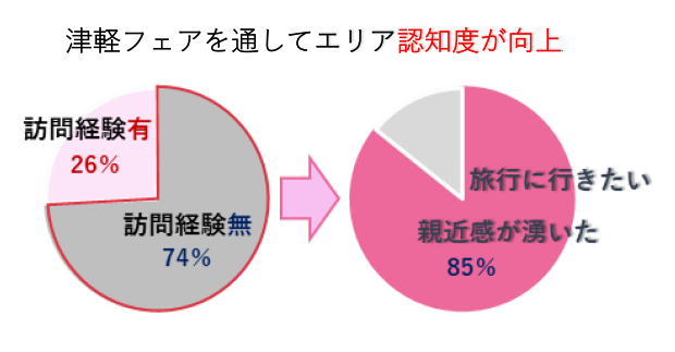 本フェアへ来場した方を対象にアンケートを実施しました。結果、津軽エリアへの認知度の向上を確認することができ、津軽エリアのブランディングに貢献しました。