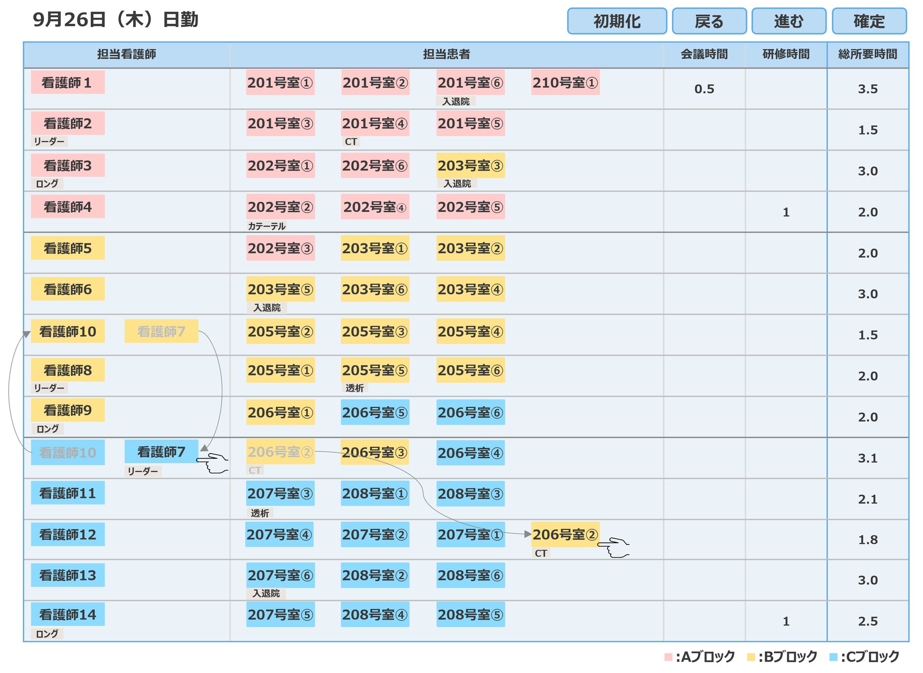 本サービスは「患者数の均等割り」「動線のムダ削減」など、あらゆる看護方式に活用できるように開発されています。導入を通して、公平で効率的な看護師配置を実現できます。