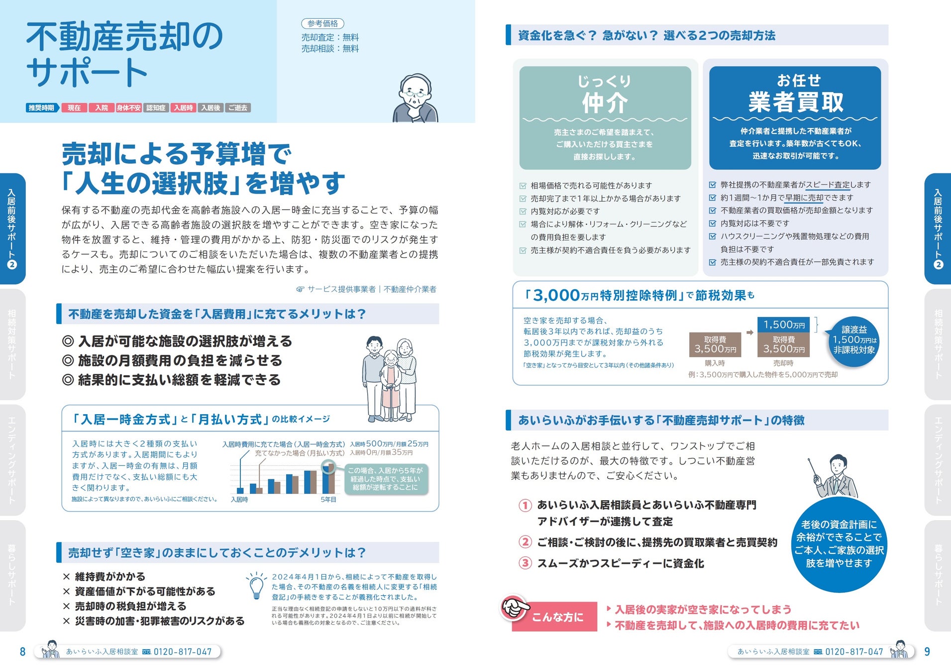 前回は、あいらいふが提供する「トータルサポート」サービスについて広く知っていただくことを目的にガイドブックを発⾏しましたが、今回は次のステップとして、「どのような時に、どのようなサービスを、どのように利⽤できるのか」といった具体的な情報を掲載し、実際にご利⽤いただく際の利便性向上を目指してリニューアルすることにいたしました。
