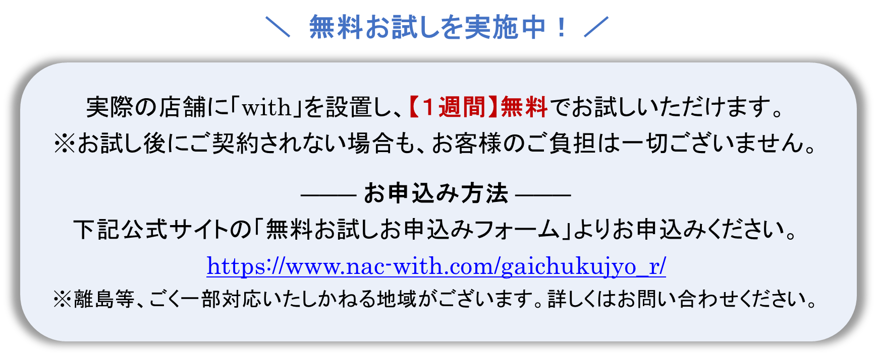 実際の店舗に「with」を設置し、【1週間】無料でお試しいただけます。