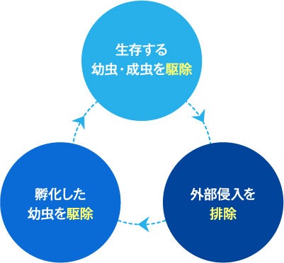 ゴキブリの特性を考えた、毎週2回、6時間の稼働を自動的に繰り返す独自の駆除システムを採用しています。