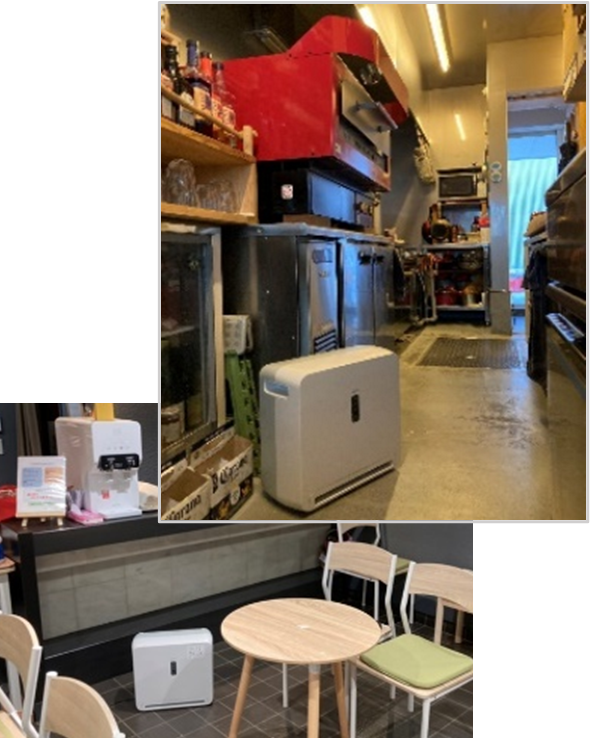このほか、エアコンを空気清浄機に早がわりさせる「BeCleanフィルター」や、水道光熱費の削減に役立つ「bubble90」など、お店や施設の環境に合わせ、クリーンな空間をつくるためのご提案を行っています。