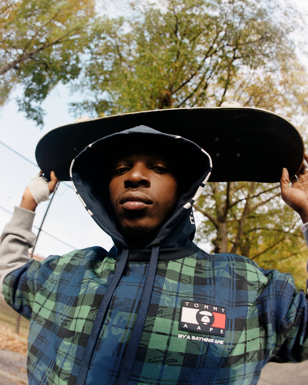 AAPEのストリートウェアスタイルとトミー ジーンズのアイコニックなストリートプレップを融合させたコレクションを展開します。AAPEのクラシックなカモフラージュ柄は、レッド、ホワイト、ブルーの3色で新たなツイストを加え、ディープグリーンのトミー ジーンズチェック柄と組み合わせて、ポップな仕上がりになっています。コレクションのメインアイテムは、カモフラージュ柄のフラッグが目をひくオーバーサイズのパファージャケット、2 in 1のチェック柄シェルパフリースウィンドブレーカー、トミー ジーンズの定番フラッグデニムジャケット、リバーシブルのパファーベストなどです。