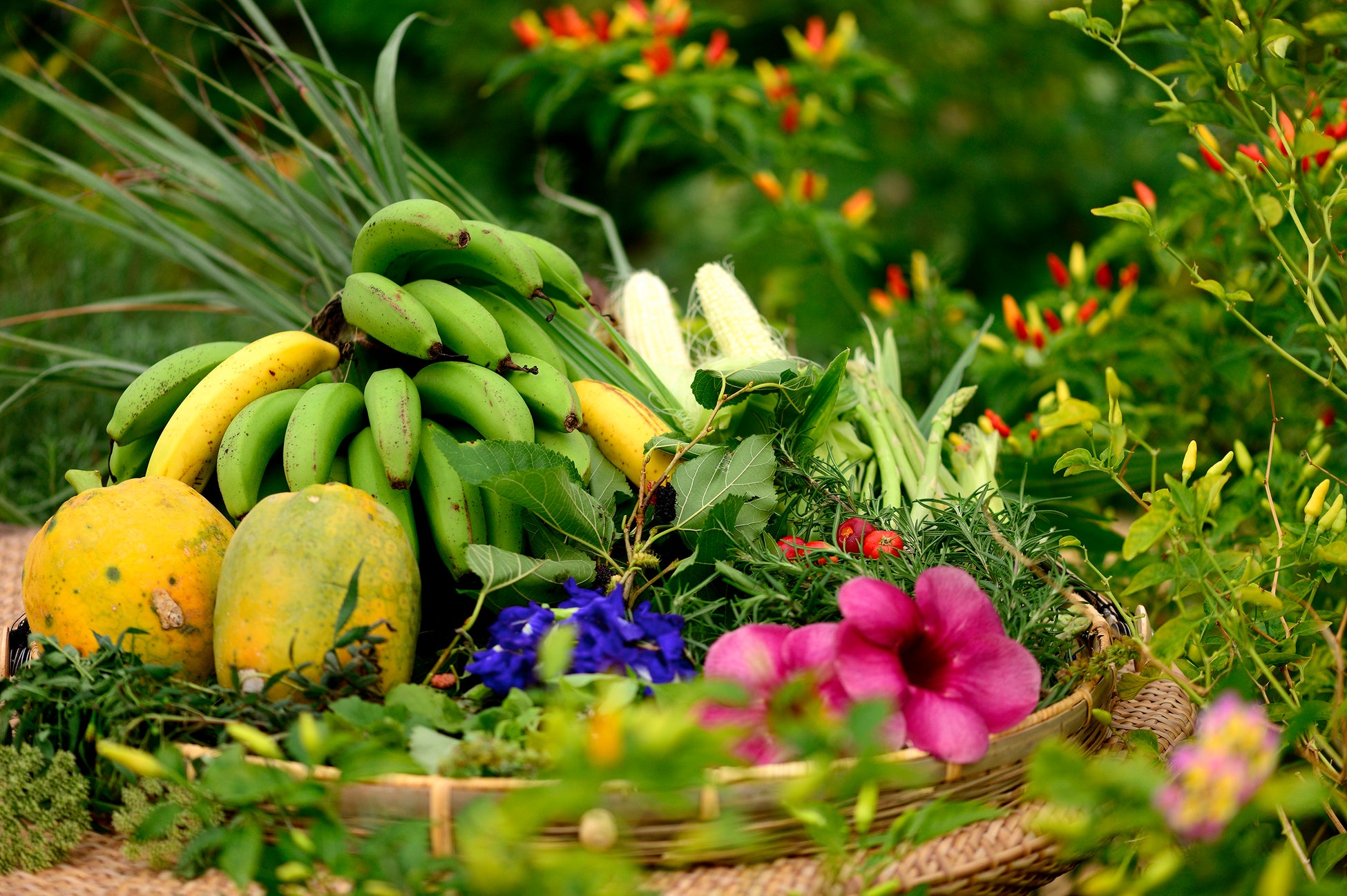 南国の太陽をたっぷり浴びて育った、ホテル自家農園「Our Farm」の野菜やハーブ。有機農法で育てられた野菜はどれも香り高く、力強い自然の滋味が特徴です。