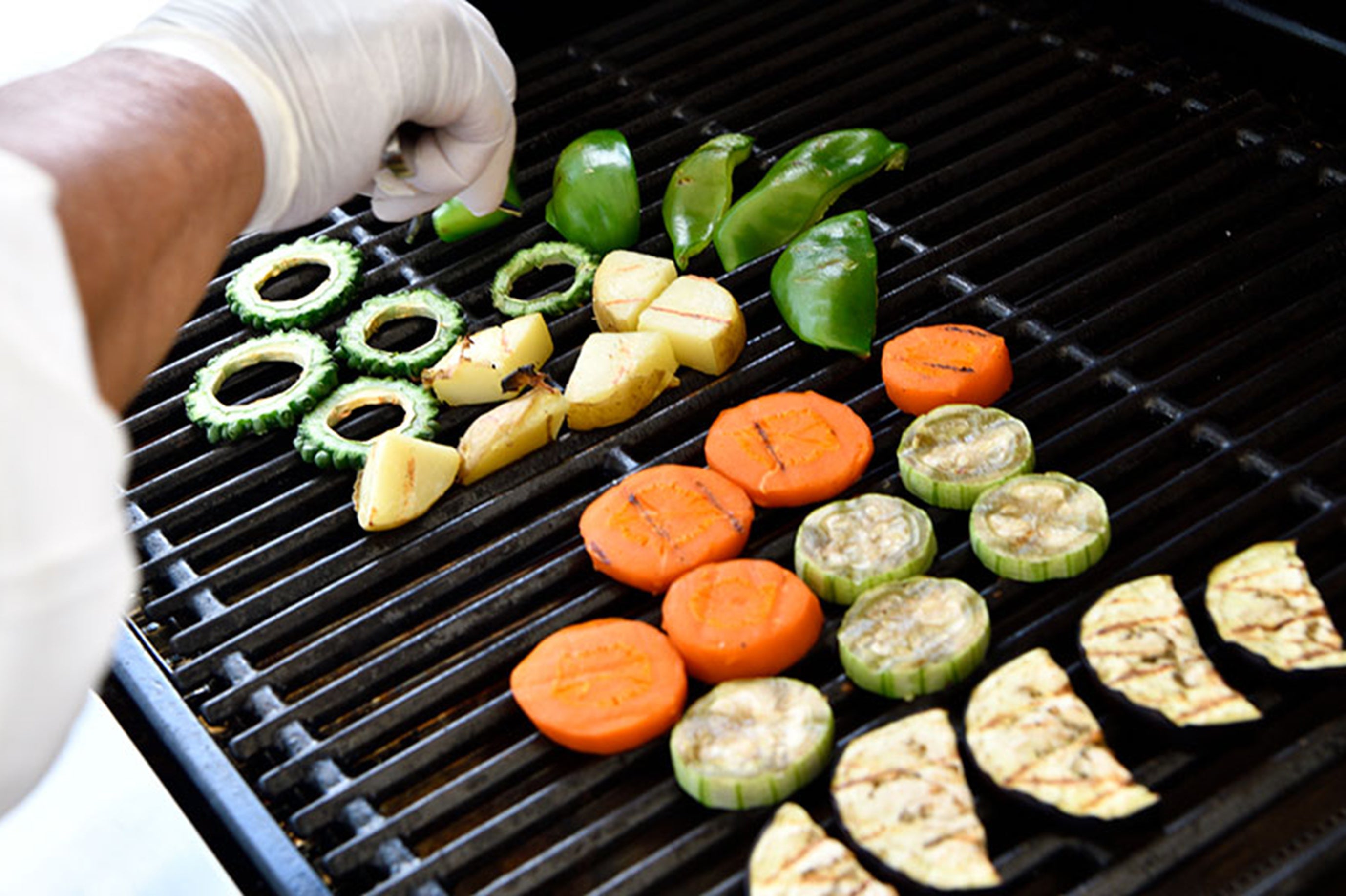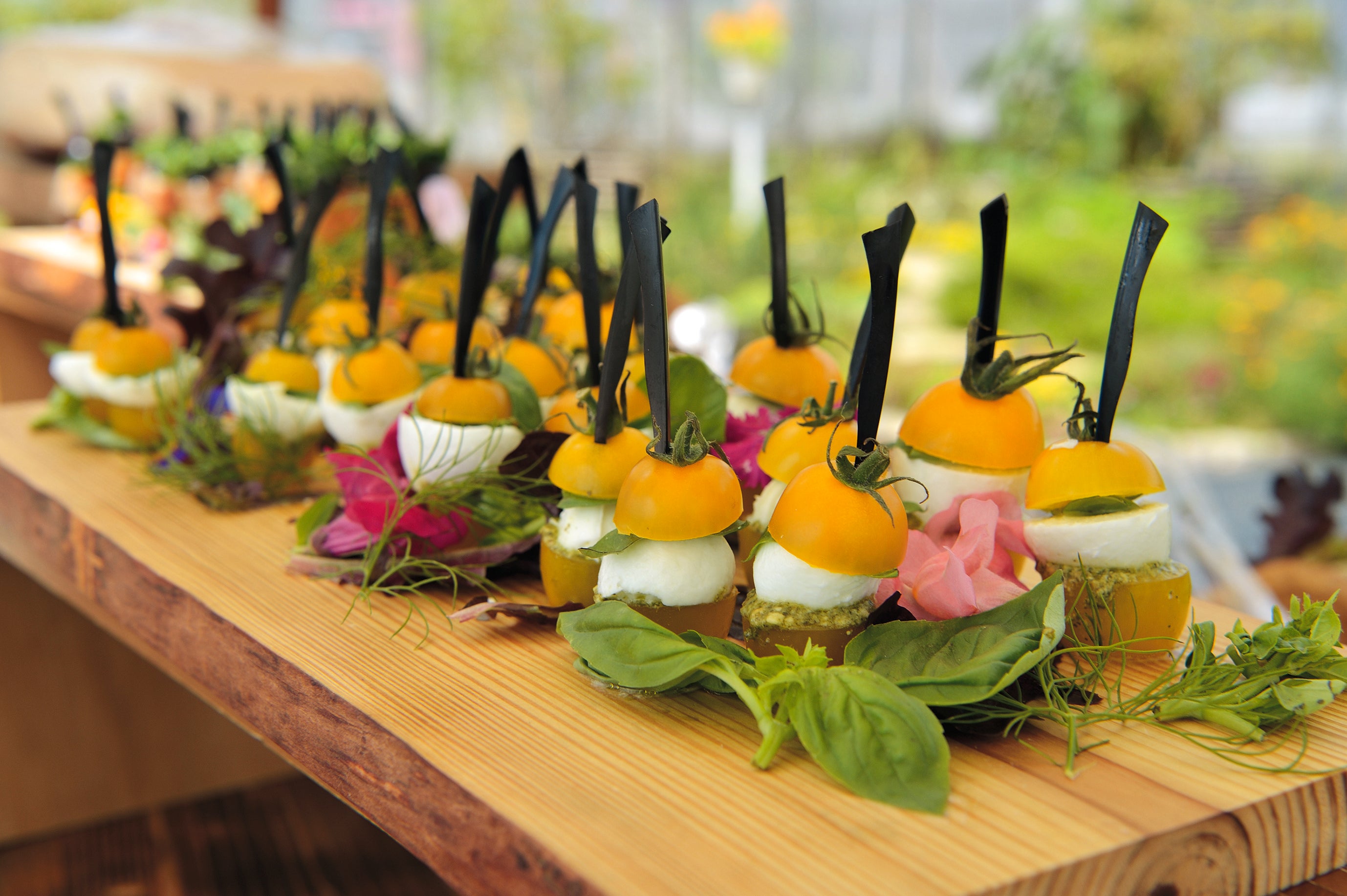 収穫した野菜はご自身でグリルして、お召しあがりいただけます。その他農園野菜をふんだんに使用したピザ、カナッペ、ピンチョスをブッフェスタイルでご提供いたします。