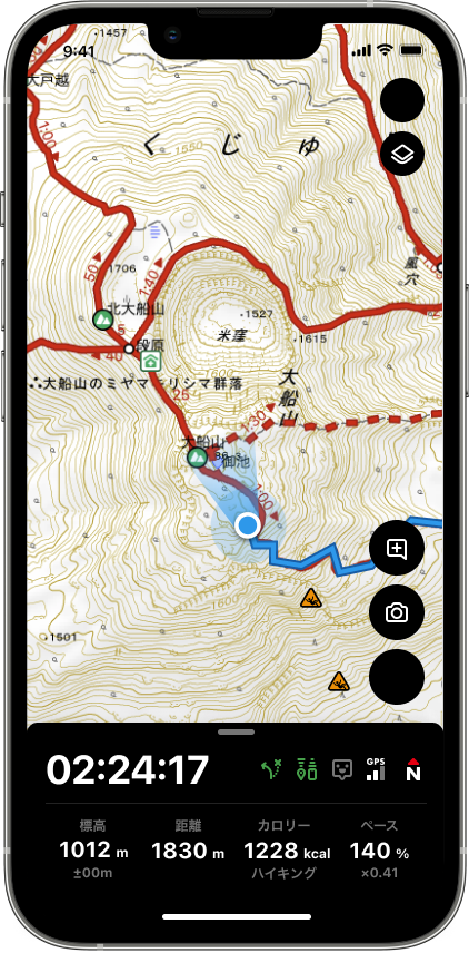 電波が届かない山の中でも、スマートフォンのGPSで現在地と登山ルートがわかる、登山を楽しく安全にするアプリ。山行の軌跡や写真を活動記録として残したり、山の情報収集に活用したり、全国の登山好きと交流したりすることもできる、日本最大の登山・アウトドアプラットフォームです。