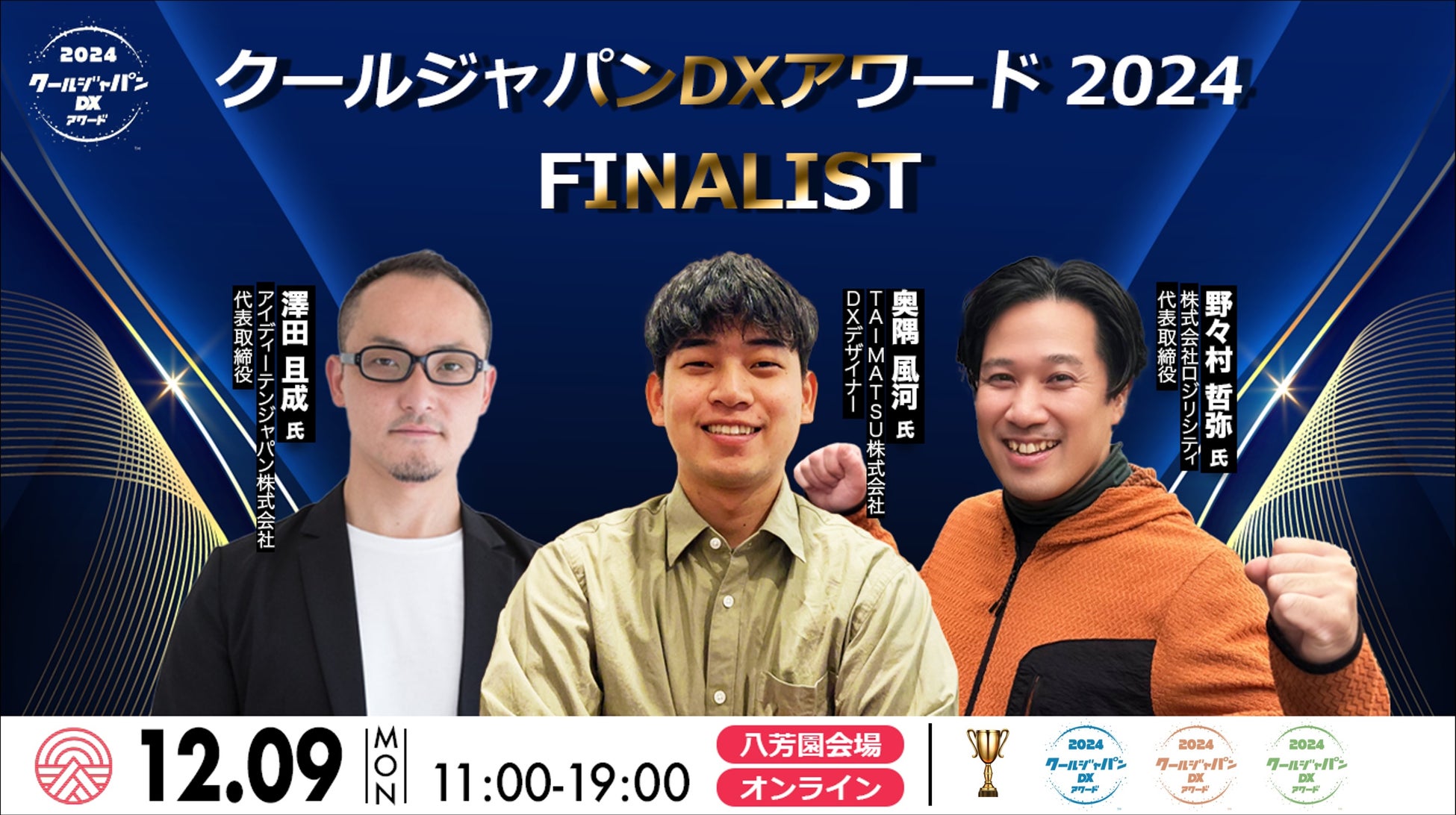 政府が掲げる2033年クールジャパン経済効果50兆円の目標達成に向け、「クールジャパンDXアワード2024」では、データとデジタル技術を活用して日本の魅力を世界へ発信する革新的な取り組みを表彰します。ファイナリストによる最終プレゼンテーションと表彰式を12月9日(月)に東京・八芳園にて開催いたします。