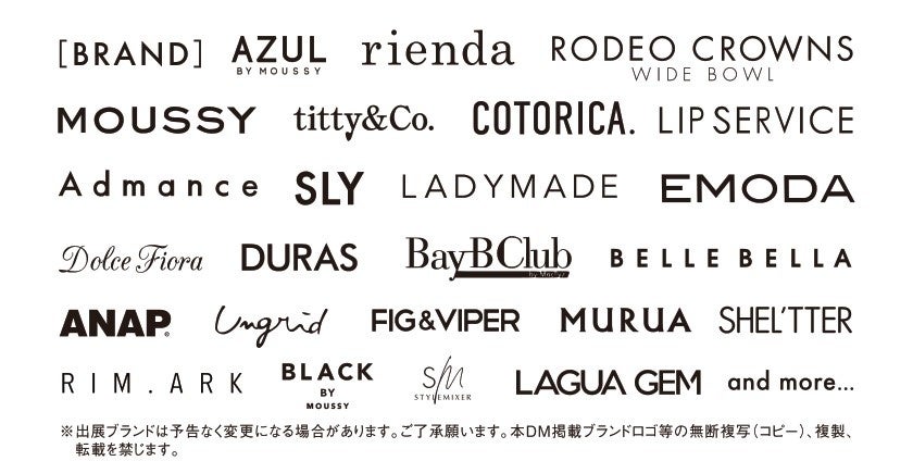 さらにこの度は、UngridやEMODA、MURUAなど若年層の女性に人気のブランドを数多く展開するMARK STYLER株式会社系列のブランドも追加出店が決まっています。