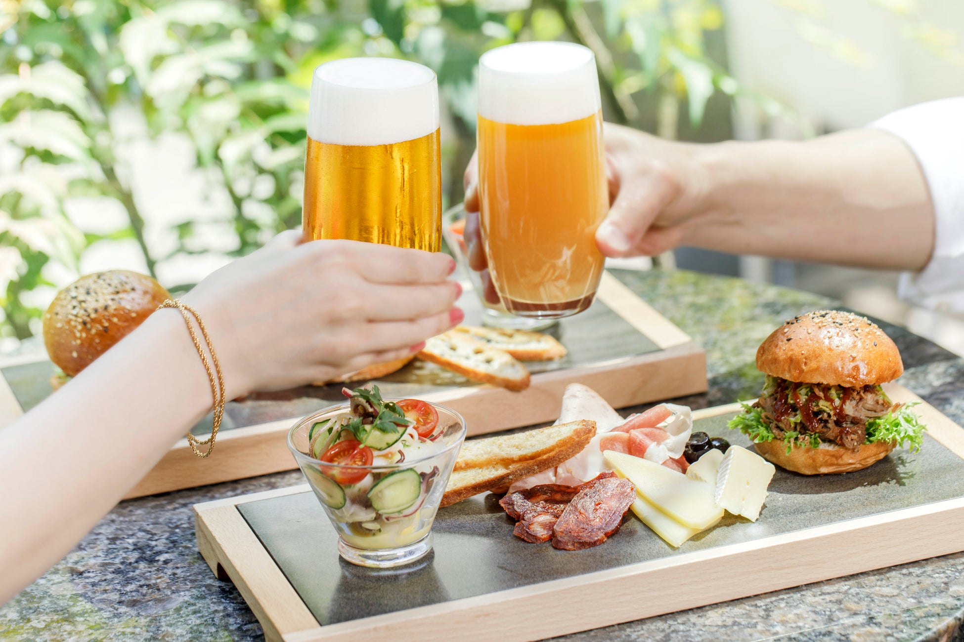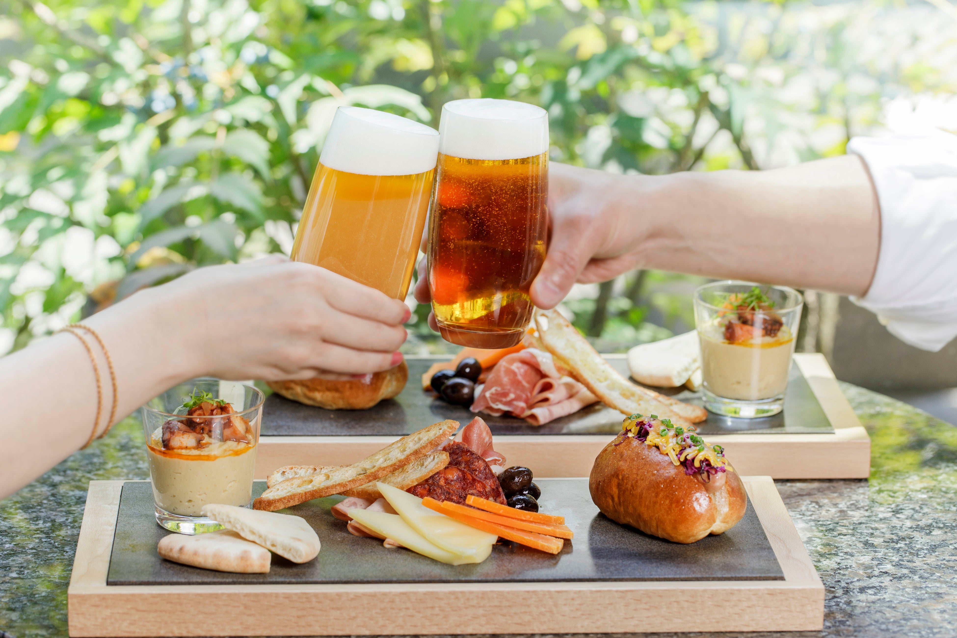 今年は、旬を迎える山梨県産の桃を漬け込み、なめらかな口あたりに仕上げた「ピーチIPA」が新登場。小麦麦芽を20%使用した柔らかな風味のエールに、桃の甘い香り、芳醇でみずみずしい果実味がプラスされたオンリーワンのフルーツビールに。爽快な喉越しが毎回好評の「パーク ブリュワリー エール」とともに、ビール2種を心ゆくまで、シェフ特製アペタイザープレートとあわせてお楽しみいただけます。ここでしか味わえない心地よいひとときをぜひどうぞ。