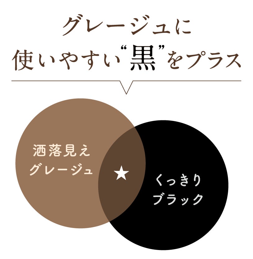 柔らかなグレージュに黒のくっきり感をプラスした、“深みのある発色”。